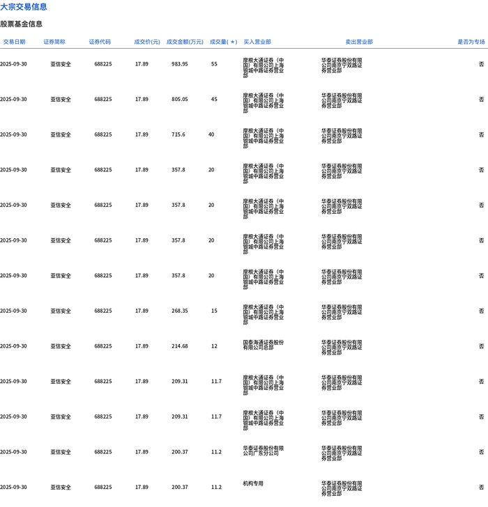 亚信安全大宗交易成交细节曝光,折价交易292.8万股,交易额达5238.19万元